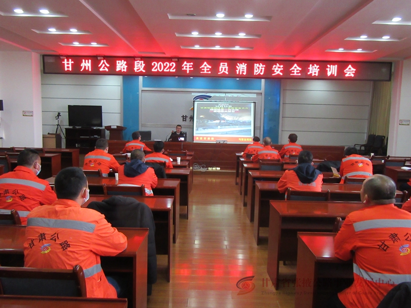 为加强和提高职工消防安全意识,2022年1月7日上午,甘州公路段邀请甘肃鑫盛安消防知识宣传中心特级教官对全体职工进行消防安全培训和消防火灾逃生疏散演练。