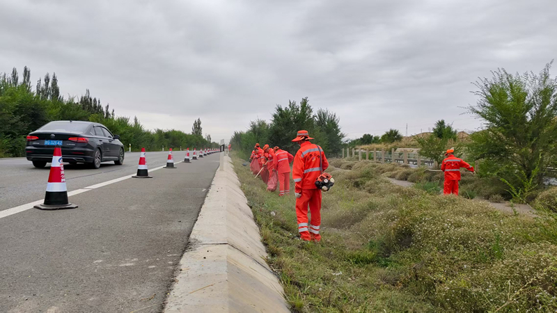 公路沿线的野草,在秋风的吹拂下肆意生长,宛如不修边幅的“长发”,不仅破坏了路容的美观,更可能遮蔽交通标志,成为安全隐患的温床。“看好了,今天我们就给这些野草来个‘大变身’!”打草组马振宝、梁彦强、王志鹏等人笑着拿起打草机,随着一阵阵轰鸣声,野草纷纷倒下,边沟逐渐露出了清晰的轮廓。桥涵清淤组、垃圾捡拾组也不甘落后,他们分工明确,精细作业,确保每一寸土地都干净整洁。一番忙碌之后,公路仿佛换上了新装,显得格外精神抖擞。