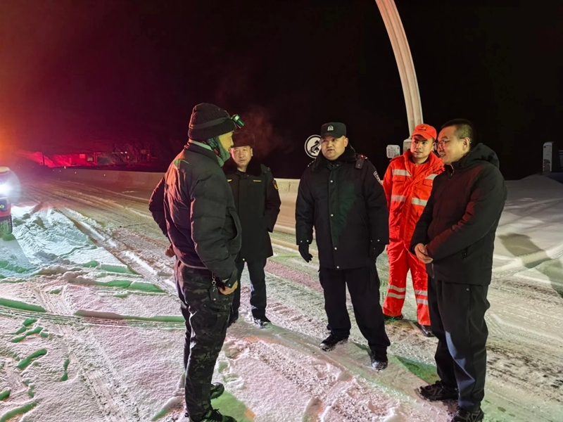 接到求助电话后,肃南公路段立即启动应急救援预案,值班值守人员迅速集结,8名养护工人携带融雪剂、防滑料、铁锹等应急物资,冒雪赶赴现场。同时,主动对接公安、应急管理等部门,启动联勤联动机制,凝聚救援合力,全力为被困群众开辟生命通道。