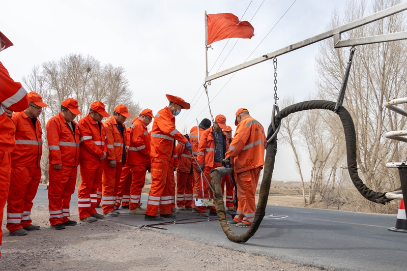 精研细判,模拟推演打磨作业匠心。中心将模拟推演作为春训的重要内容,围绕安全作业区布设、路面灌缝作业等环节,逐项细化流程、排查隐患。安全作业区布设模拟推演中,技术骨干结合管养路段实际,对照国家标准规范,认真推敲各功能区域的设置方案。路面灌缝作业模拟推演中,干部职工从施工车辆停靠、开槽清缝到灌缝、现场清理、交通恢复,逐环节梳理流程,确保操作规范、安全可控。同时,技术团队多次深入一线开展实地踏勘,精准掌握路面病害情况,将养护任务细化到具体路段和时段,为春季路面灌缝等养护作业打好基础。