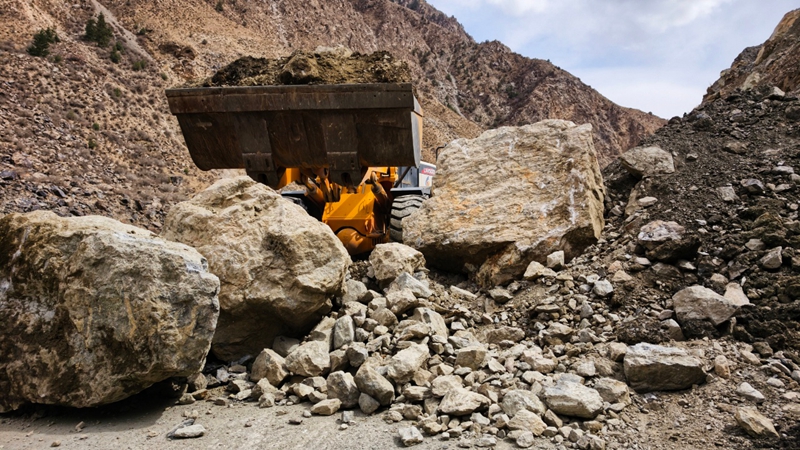 清理路面落石