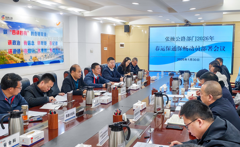 1月30日,张掖公路事业发展中心召开张掖公路部门2026年春运保通保畅动员部署会议。张掖境内高速(一级)和普通国省干线公路各养护单位,地方交通运输、公安交管、路政执法等部门参加会议。